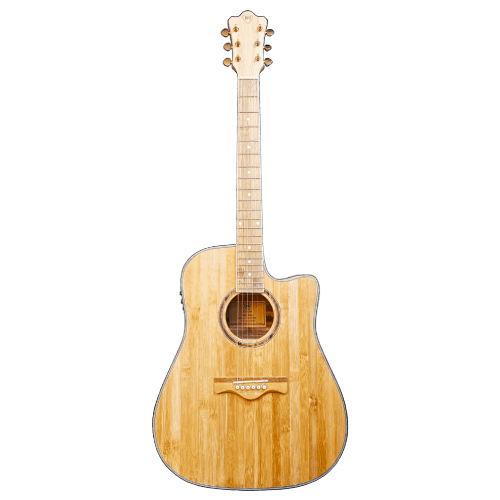 The JMJ PB-01E Cutaway is a modern evolution of our signature bamboo guitar, designed for both stage and studio performance. Crafted entirely from engineered bamboo for the top, back, and sides, this model continues our commitment to sustainability while delivering exceptional durability and tonal character.